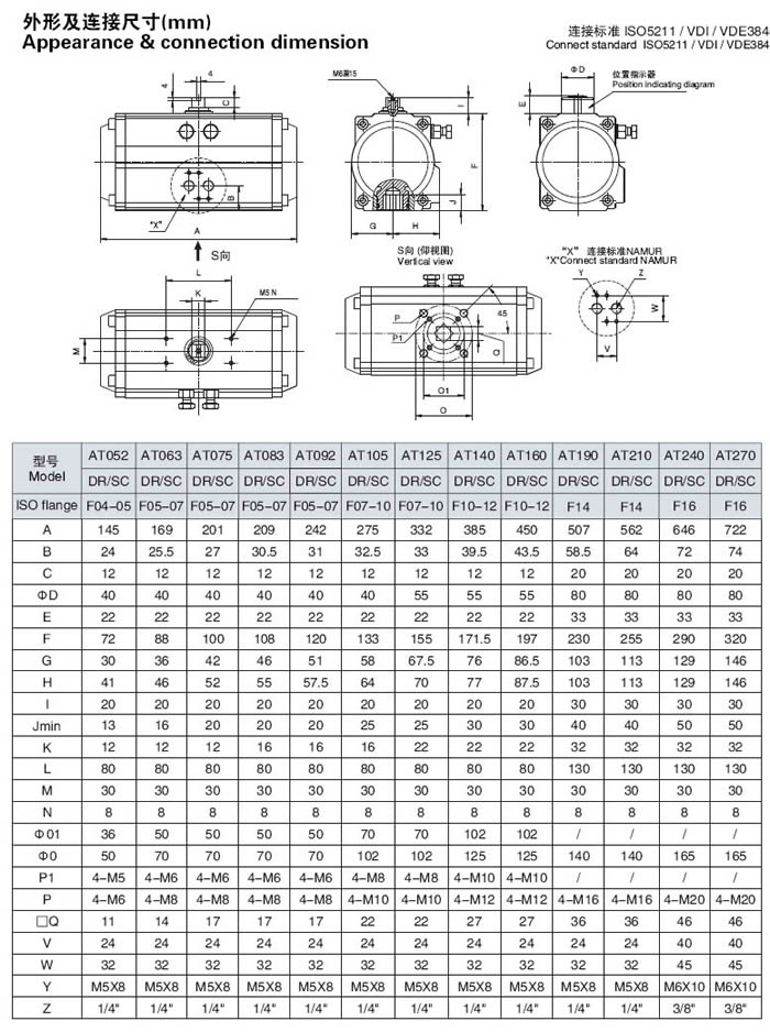 7)、安裝連(lian)接尺寸(cùn)符合ISO5211、DIN3337和(he)VD1/VDE3845以及NUMAR标(biāo)準,确保(bao)AT32氣動執(zhi)行器間(jian)的互🤞換(huàn)性和方(fāng)便安裝(zhuang)電磁閥(fa)、限位開(kāi)關等附(fù)件。