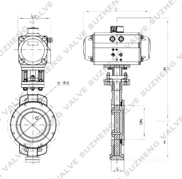 八、D671X氣動(dòng)不鏽鋼軟(ruǎn)密封蝶閥(fá) 外形尺寸(cun) 單位:mm