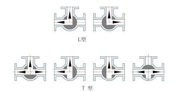 氣動三(sān)通球閥分(fèn)型和(hé)T型,介(jie)質流通方(fang)向見下圖(tú)。氣動三通(tong)LT型球(qiu)閥适用于(yú)介質的分(fen)流、合流或(huò)流向切換(huan),型孔(kong)道可以使(shi)三個通道(dao)互相連通(tong)或使其中(zhong)兩個通道(dào)連👌通,氣動(dòng)三通球閥(fa)一般采用(yong)三個閥座(zuo)結構,亦可(ke)根據用戶(hù)要求采用(yong)四閥座結(jié)構。