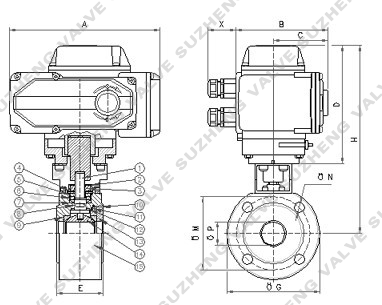 六(liu)、Q971F電動對夾球閥(fa)外形圖